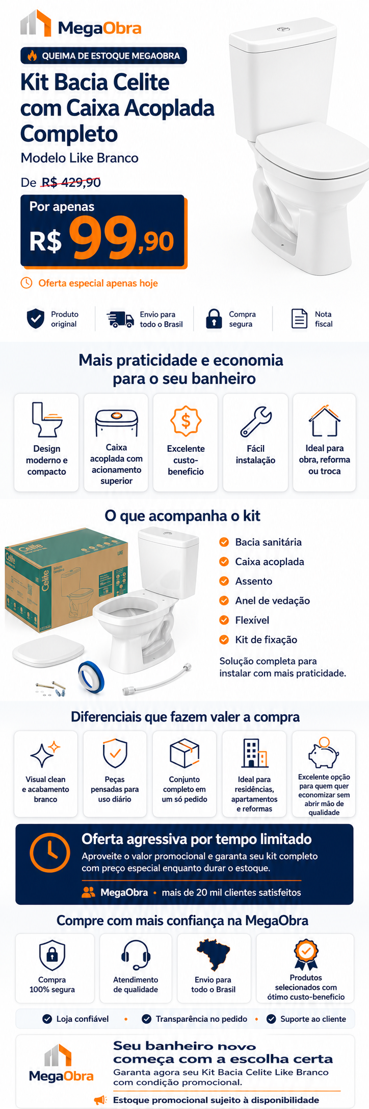 Kit Bacia Celite Com Caixa Acoplada Completo Like Branco