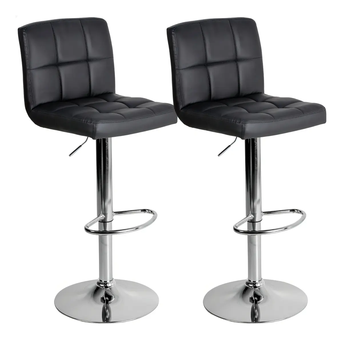 Kit 2 Banquetas Giratória 360º Couro Sintético Preto Cromado Kit Altura Ajustável
